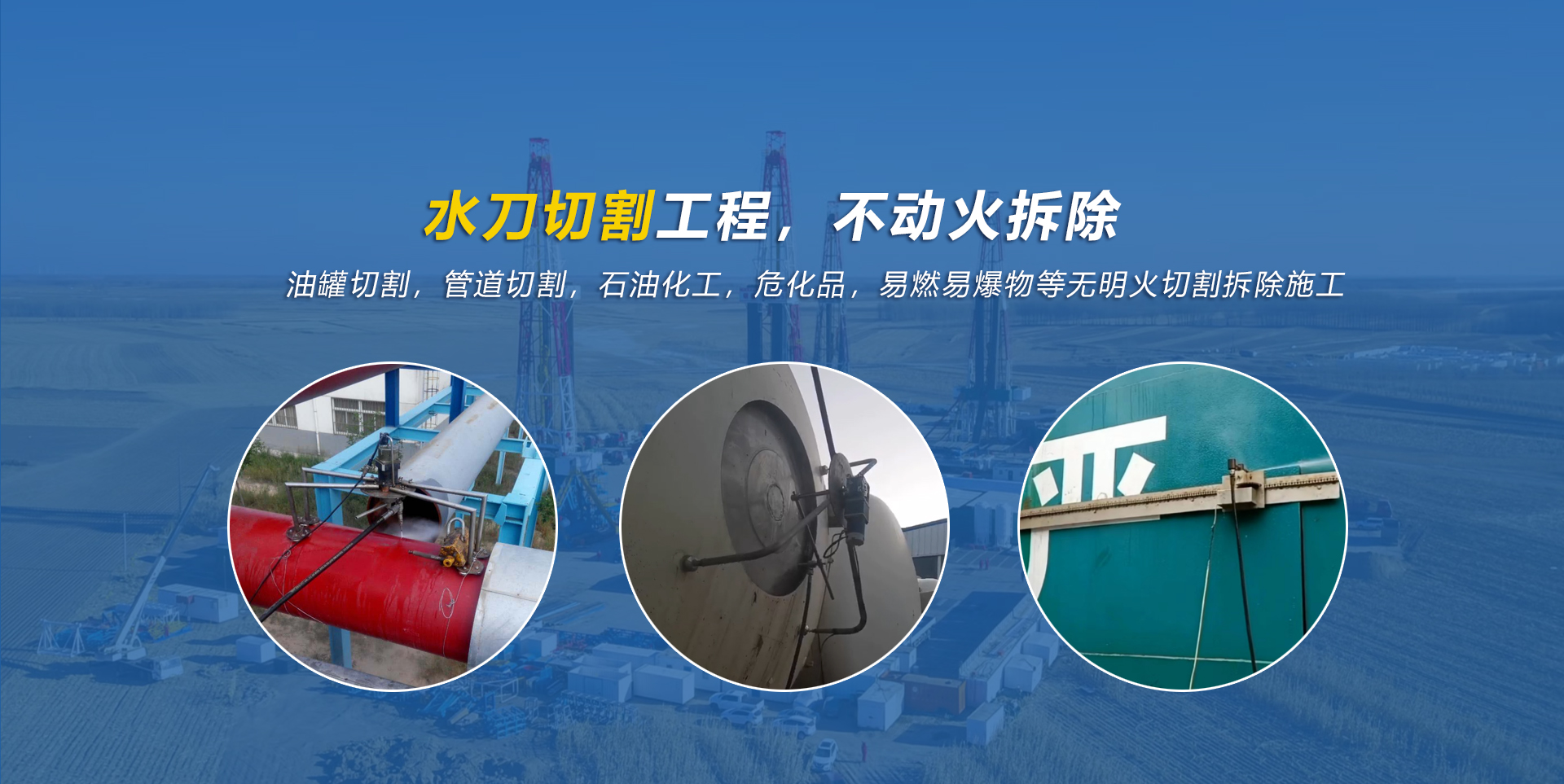 水切設(shè)備施工中無火花,無溫度變化,無靜電,免置換吹掃。以水為刀,切除一切安全隱患!承接礦業(yè),化工,石油,燃氣等各種危險品,易燃易爆品的切割,廢舊罐體及管道的拆除,打孔,除銹,混凝土切割等作業(yè)。精準的施工隊伍切割工程遍布全國各地。