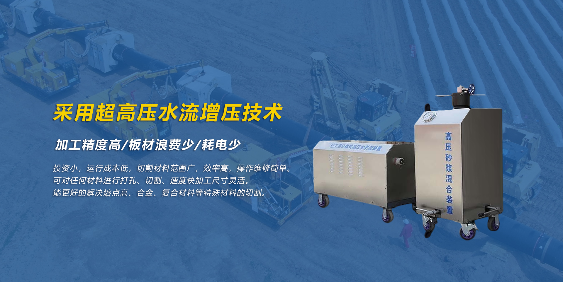 公司的先進設(shè)備可以提高施工的速度, 而且擁有的施工水刀切割裝備能降低施工成本; 更重要的是施工團隊會根據(jù)地形地勢提供多種解決方案。